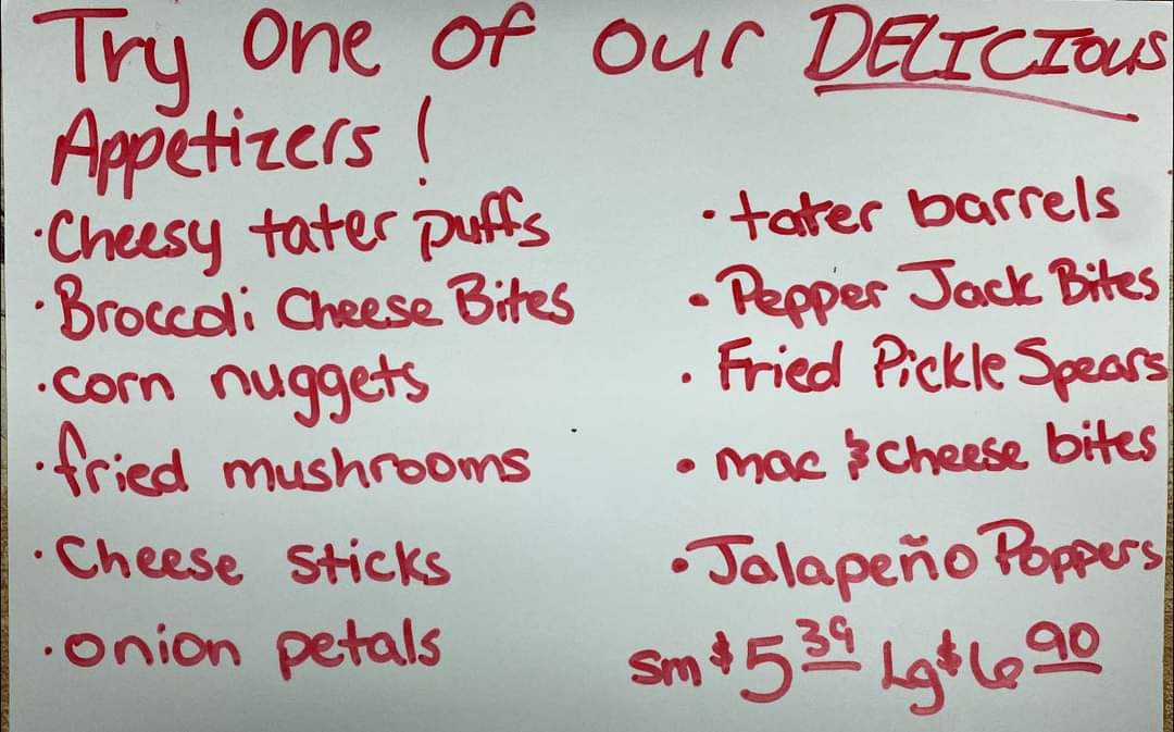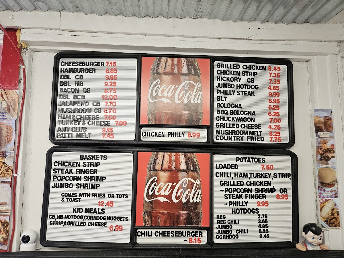 Meals here work well for a quick lunch break, a casual dinner with friends, or a simple, no-fuss snack any time of day. Whether you’re craving a bacon-topped patty melt, a country fried steak sandwich, or a basket of chicken strips or popcorn shrimp, the menu offers familiar favorites that feel both comforting and approachable.